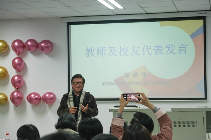 的经验和对老师的感恩,对母校的怀念。广告是一个与设计联系密切的专业,作为传院设计担当的谢孟颐老师和刚刚加入广告系的娄文冰老师和大家讲述了他们对设计的理解和坚持,让很多员工和同学颇受启发。杨秋生老师作为广告系的兼职老师,陪伴广告系走过了13载年华,也见证了广告系从无到有,他既是我们的员工,又是我们的朋友,更是我们可敬可爱的老师。