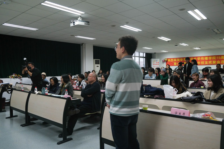 11月最后的一天,细雨没有影响大家重聚的热情,上午隆重的院庆开幕式结束后,下午一点半的传院407传来阵阵欢声笑语。从2002级到2019级,员工和在校生们串起了广告系17年的青春。精心设计的帆布袋、实用可爱的小卡套、丰富有趣的活动环节都体现了广告学子的创意力。参加聚会的教师有系主任何平华以及教师谢孟颐、蔡菁、娄文冰和兼职教师杨秋生、卢玮瑜等,欢聚会由大三广告班班长解涛主持。