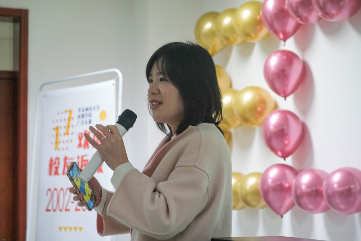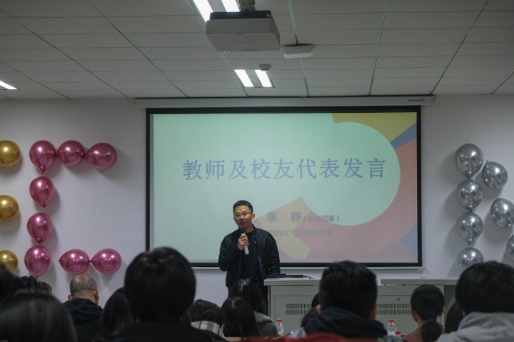 由17级广告专业陈睿多同学设计虚拟校园卡早已将学长学姐们带回了母校,可口的茶点也让回校的同学感受到了家的温暖。在欢聚会上,作为员工代表的姜爱榕学姐、胡一钦学长和李骅学长以过来人的身份和大家分享了他们在广告行业
