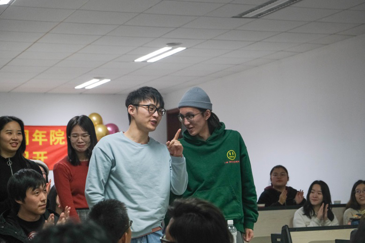 16级广告专业的汪怡佳同学为学长学姐们献上了两首小提琴曲,17级广告专业的魏宇鑫同学则为大家带来了邓紫棋的歌曲《画》,虽然现场没有完美的音响设备和舞台,但是并不影响两位同学的精彩演出。同样为我们带来表演的还有平时看起来很严肃的何平华老师,何老师为了这次的欢聚会做足了准备,开始前还悄悄地在办公室练习。扑克牌魔术表演虽然漏洞有点多,但是大家十分捧场,纷纷欢呼“厉害”,何老师的反差萌将欢聚会的气氛推向高潮。