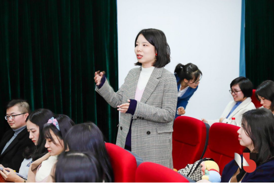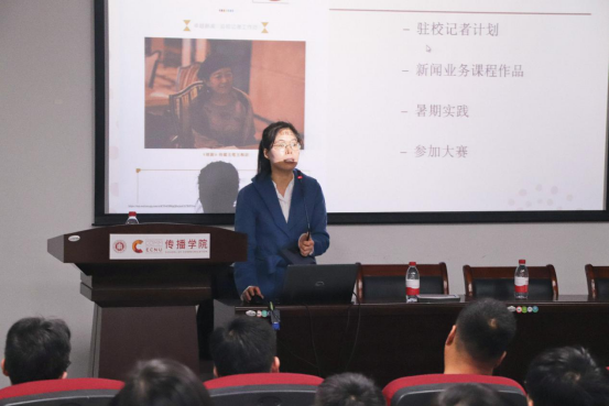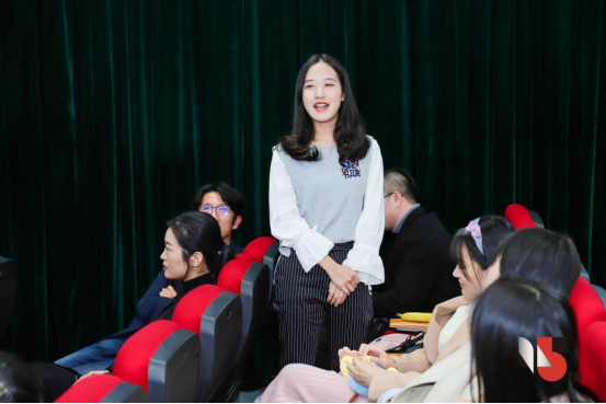 曾担任15级硕士生辅导员的孟笛老师面对员工与同学们感慨颇多,她提到了2015年自己第一次走上讲台担任新闻系教师的感触。孟老师表示,她十分感谢各位同学给予她的支持与帮助,也希望员工们可以为学弟学妹们提供更多优质实习与工作机会。