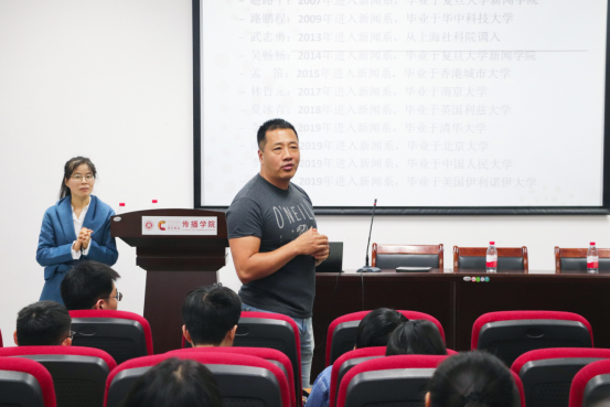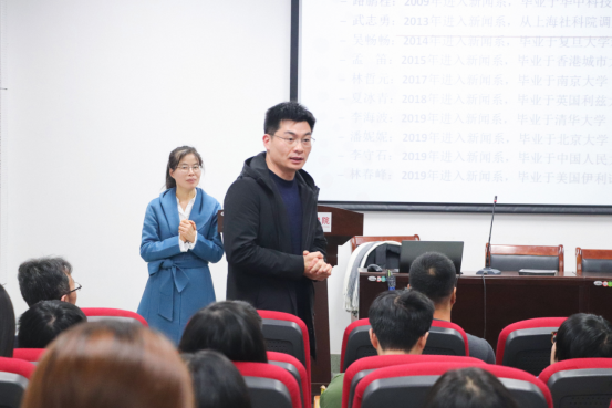 林春峰老师与李海波老师都是今年新加入新闻系的青年才俊,他们的到来为新闻系增添了更多活力与国际视野。林春峰老师感叹道新闻系本科同学的涉猎广泛与思想深度,又对何为“水课”、何为“干货”发表了自己的见解,向同学们说明学习理论知识的重要性。随后李海波老师也表达了自己对新闻系以及同学们的祝福。