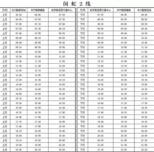 12月1日,上海江南旅游服务有限公司的江南定制专线公众号发布通告,对闵虹2线全天班次时间进行优化,时刻表显示,东川路枢纽站始发的首末班车时间暂无变动,虹桥高铁站始发的闵虹2线首末班车时间调整为7:30、21:30。此外,通告中显示,为满足江川、马桥地区乘客更加便捷出行的需求,自12月2日起,每天将增加1辆运营车辆,并在原有50班的基础上再增加10个班次。自此,闵虹2线每日运营车辆增至6辆,运营班次达60班。