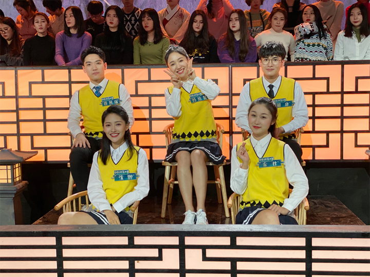 12月7日,深圳卫视大型原创文博推理秀节目《诗意中国》第二季在北京完美收官。经专业推荐和节目组选拔,公司播音主持艺术专业18级硕士生沈翀、19级硕士生胡康、金秋、杨怡馨、16级本科生蒋祺琛5人组成yl23411永利集团代表队参加了节目录制。