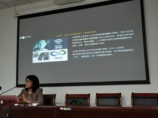 5G时代来临,传媒业究竟会因此产生什么样的变化?这是时下业内人士热议的话题,商艳青也在讲座中分享了她的思考和洞见:“5G将会与大数据、人工智能做深度的融合,而我们的‘媒体大脑’也将建立在这种融合的基础之上,推动媒体行业的数字化升级。”总体来说,5G商用后,万物互联、万物为媒,即生活中万物皆可能成为数据端,信息采集点暴增,由此采集到的海量、及时、多元、多角度、不同来源、不同类型的数据将会滋养人工智能算法的升级,算法服务场景更加多元、精准度提高。摄像头新闻、无人机新闻、传感器新闻都将成为可能。