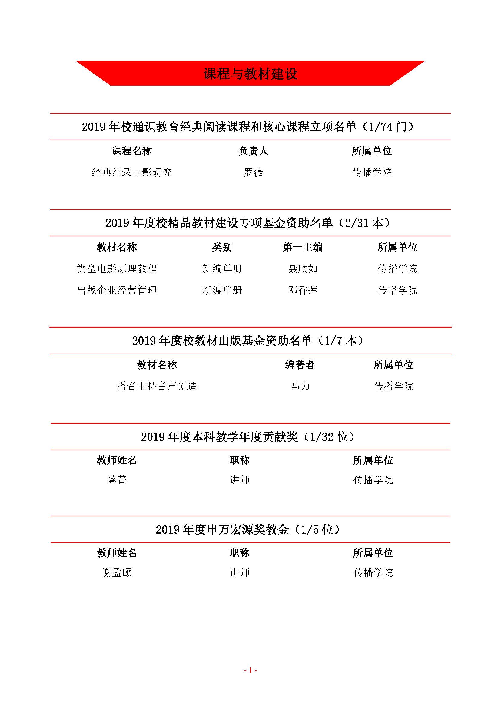 2019年度yl23411永利集团教师荣誉册(课程项目、教改项目、竞争性项目荣誉)