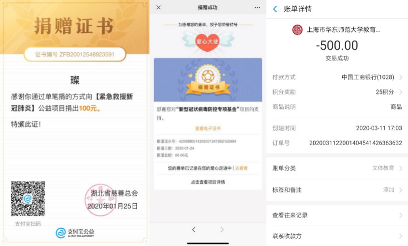 最后,第二党支部也用实际行动支持抗疫,各位党员同志积极为疫情防控工作捐款,本次活动共收到捐款1411.66元。自发踊跃地捐款捐物,是支部党员对抗击疫情工作的无私支持,也是我党优良作风的体现,关键时刻各位党员同志勇于担当,坚守初心,用朴实的行动诠释了对党和人民的忠诚。