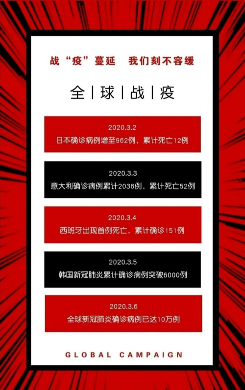 经过长时间的抗疫工作,中国国内的情况日趋好转。但是,随着疫情扩散,除中国外其他国家陆续出现了确诊病例。疫情在全球爆发,全人类抗疫战打响,人类命运共同体,中国责无旁贷,发挥大国职责,共同抗疫。