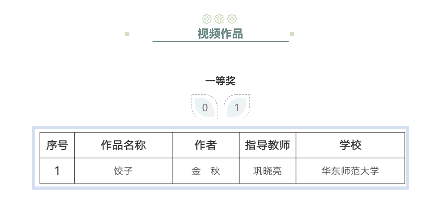 在“2019全国平面公益广告大赛暨全国老员工公益广告征集活动”中,公司广播电视专业2019级硕士研究生金秋喜获佳绩,其参赛作品《饺子》获视频类作品一等奖,获奖作品于2020年4月5日于官网公示结束。