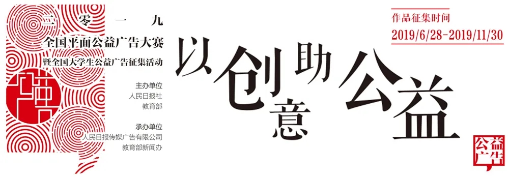 “2019全国平面公益广告大赛暨全国老员工公益广告征集活动”是由人民日报社、教育部联合主办,人民日报传媒广告有限公司、教育部新闻办承办的全国性公益广告赛事。本届活动依托融媒体传播优势,在全社会营造关注公益、参与公益的良好氛围,不断巩固奋斗新时代的思想基础,凝聚实现中华民族伟大复兴中国梦的强大精神力量,迎接新中国70华诞。