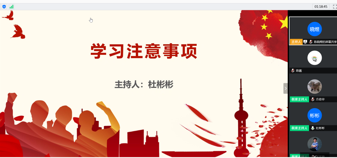 最后,党委副书记、副经理杜彬彬同志向入党积极分子讲解此次学习的注意事项。期望入党积极分子在聆听公司党员先进事迹之后主动思考,在疫情后学习和工作中有所作为。通过重温党章,各位入党积极分子同学能更了解、熟悉党员权利、义务及发展程序。按照学习培养方案,在线上学习中取得满意的成绩。