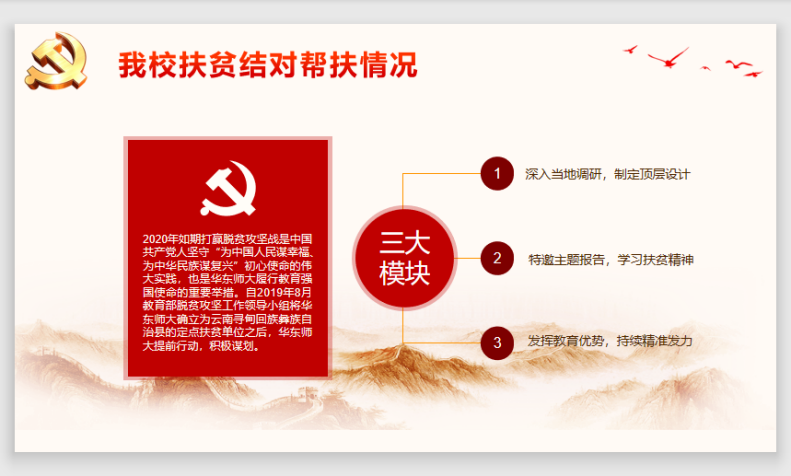 自2019年8月教育部脱贫攻坚工作领导小组将华东师大确立为云南寻甸回族彝族自治县的定点扶贫单位之后,华东师大提前行动,积极谋划。公司将结对帮扶工作划分为三大模块:深入当地调研,制定顶层设计;特邀主题报告,学习扶贫精神;发挥教育优势,持续精准发力。通过主持人的介绍,党员们对公司对口帮扶工作的具体情况有了更深入的了解。