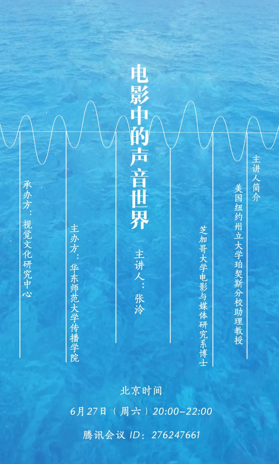 众所周知,电影是一门视听艺术,在享受电影所带来的视觉盛宴的同时,我们也在寻觅伴随光影沉浮的电影声音世界。本次的讲座围绕着“电影中的声音世界”展开,让我们揭开电影声音的神秘面纱,去探寻在光影背后,电影声音所蕴含的的强大魅力。