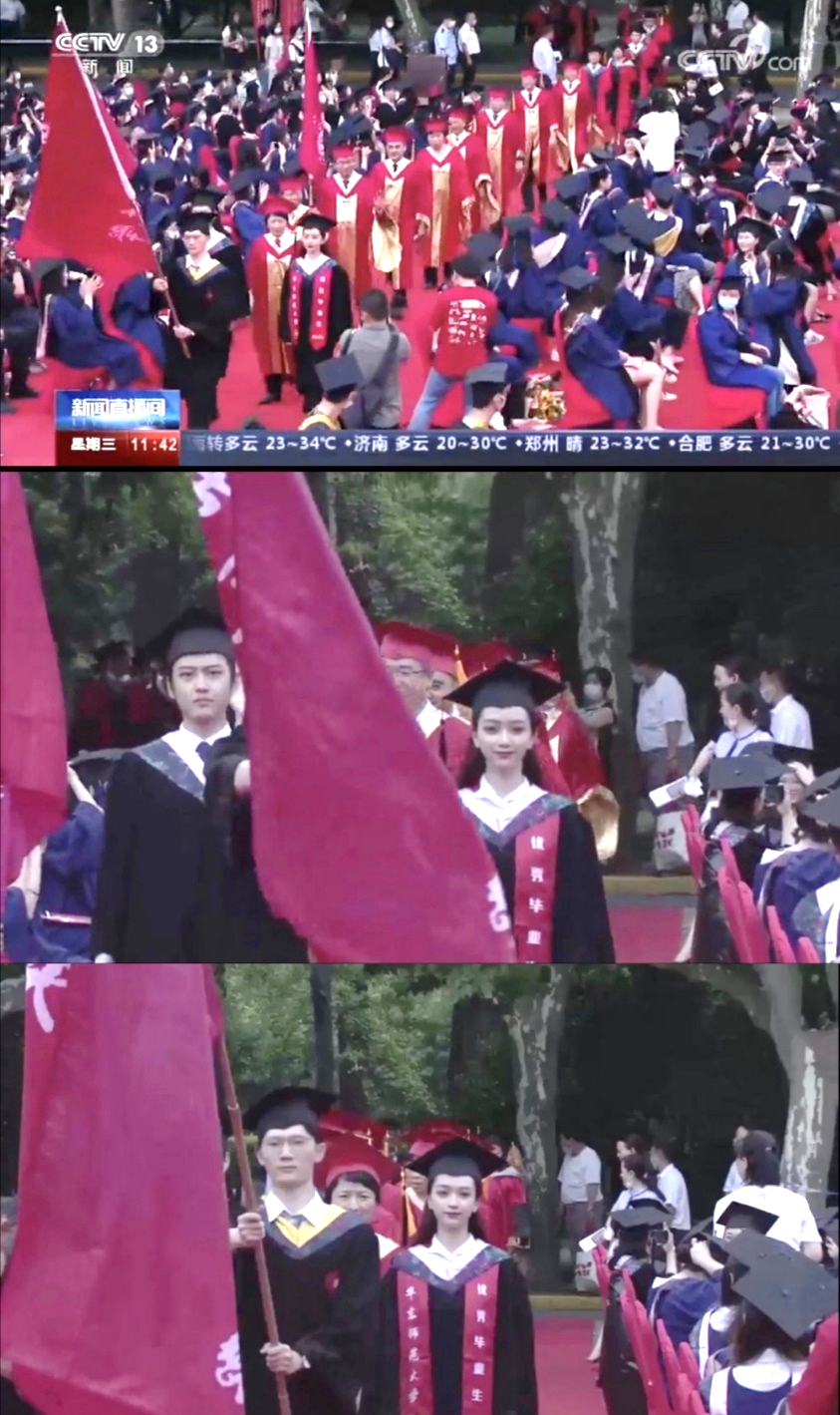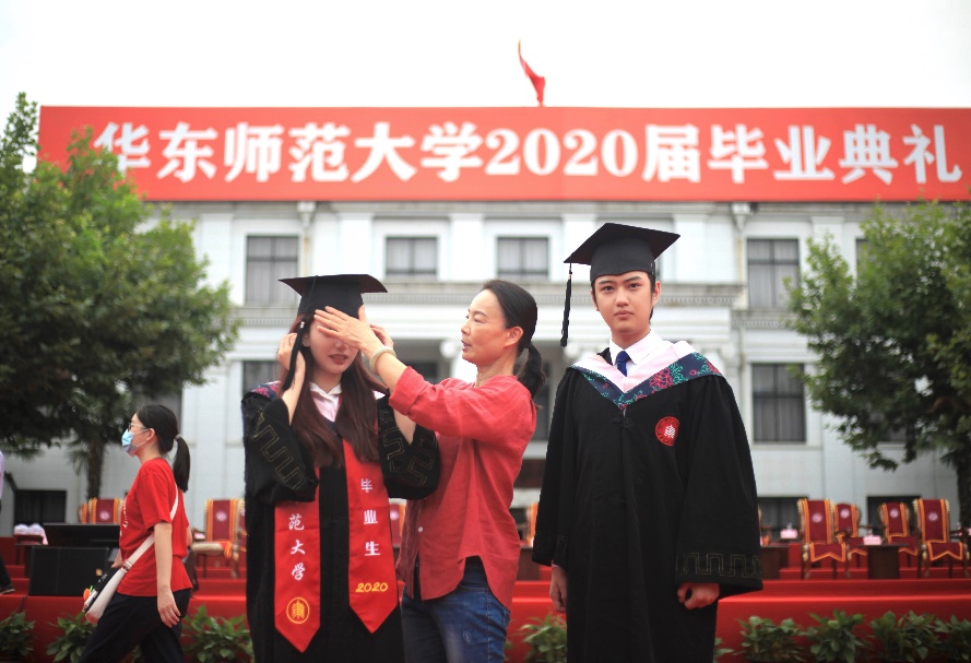 夏侯迎翔同学当天还接受了上海电视台的采访。被问及“你参加毕业典礼给你的感受和收获是什么”,他回答道“我觉得能在外部条件比较困难的情况下,还高质量的完成我们的毕业典礼,我觉得非常感动,也肯定给我们这一届留下了非常难忘的记忆。我想这也是师大一直教给我的一种精神,面对困难时的从容不迫的心态和努力奋斗的信念”。