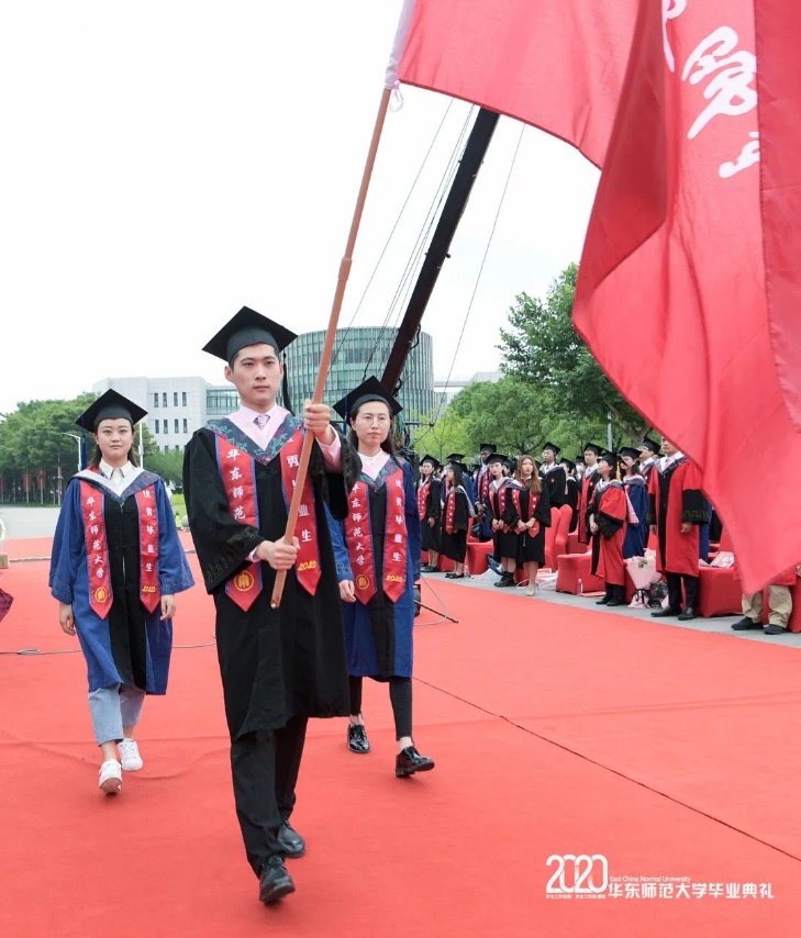 桑毓泽同学在中北校区的毕业典礼上担任护旗手,在毕业典礼中他印象最深刻的是“看到公司的校旗在眼前,内心有一种非常强烈的安全感,感觉师大永远是我最坚强的后盾,在彩排阶段,其实没有什么感觉,但是当我真的穿上学士服的时候我才真正感觉到自己已经毕业了,恍若隔世一样。”
