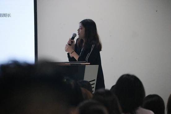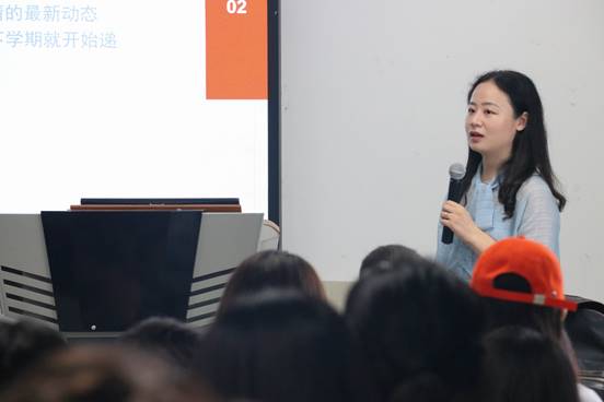 宣讲会伊始,副经理陈虹老师介绍了校级层面的研究生教育国际化项目,涵盖了国家公派、国(境)外访学、国际会议资助、校际交流及联合培养项目。与此同时,陈虹老师对研究生新生们提出了几点希望,鼓励同学们以更宽的视野、更高的素质、更坚韧的意志,成为具有全球视野、多元思维、善于跨文化沟通、交流与合作的未来一代。