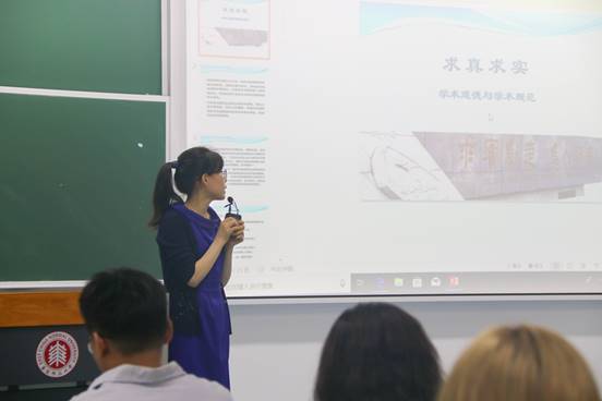 与此同时,陈老师还用自己的亲身经历,告诫同学们在坚守学术诚信,坚决抵制学术不端行为的同时,也要谨防他人剽窃自己的研究成果。随后,她通过介绍四种引注方式强调了论文规范撰写的重要性。同时陈老师也指出,还有一个中心原则:尽量写出一篇合格的论文。随着学术规范标准的不断提高,论文的质量至关重要。