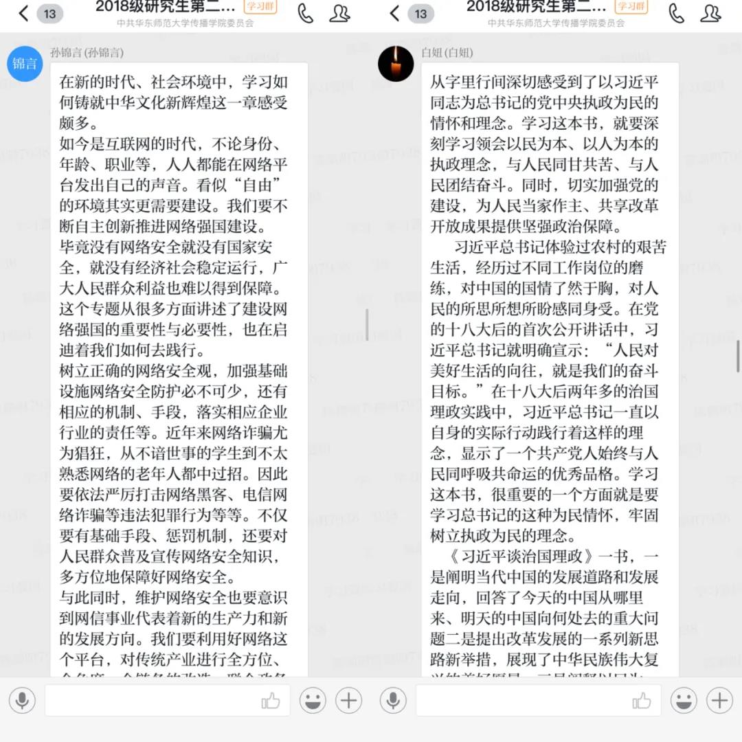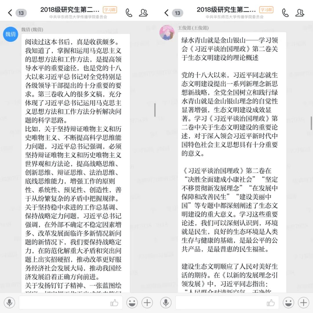 近日,中共中央办公厅转发了《中央宣传部、中央组织部关于认真学习〈习近平谈治国理政〉第三卷的通知》,强调认真学习《习近平谈治国理政》第三卷,是用习近平新时代中国特色社会主义思想武装全党、教育人民的重大政治任务。yl23411永利集团2018级研究生第二党支部利用学习强国平台发起线上主题党日活动,号召支部党员认真学习《习近平谈治国理政》第三卷,并观看上海学习平台推出的“【强国半月谈】原创视频第四集——如何读懂《习近平谈治国理政》第三卷”,并围绕理论著作和视频内容畅谈感想,大家紧密结合自身的学习进行思考、总结,达到学有所悟、学有所得、学有所获的良好成效。总体来说,这次主题党日活动圆满完成各项任务,取得了预期效果。