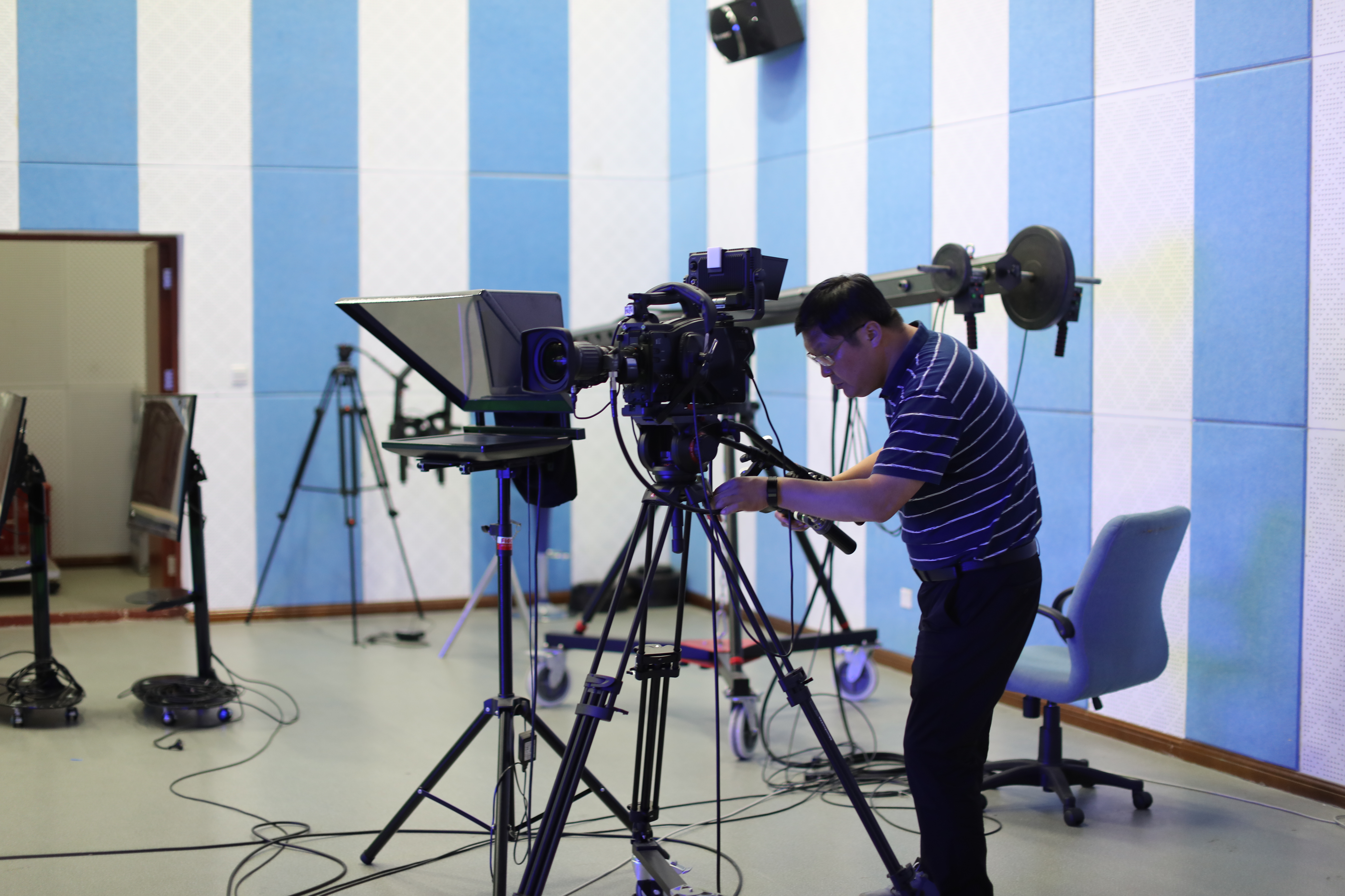 杨萌芽经理参观演播室设备