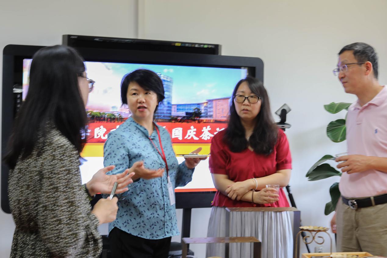 茶话会在一片欢声笑语中拉开帷幕,老师们一边品尝点心,一边在浓浓的节日氛围中畅聊中秋团圆话,共庆祖国华诞。