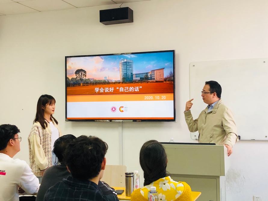 为帮助同学们更好地掌握说好“自己的话”的要领,姜波老师以三个不同案例为切入点,与在座同学们一起分析、交流和探讨,同学们也积极思考、畅所欲言,在实践训练中切身感受如何说好“自己的话”。