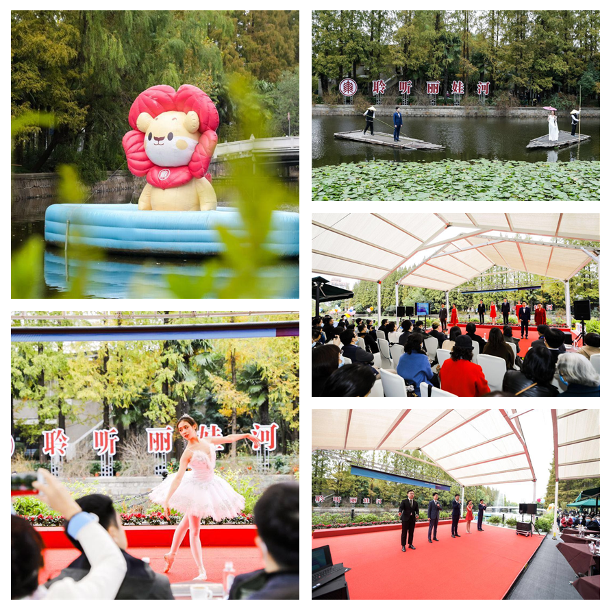 开幕式上,实景情境朗诵音乐演出在丽娃河畔上演。yl23411永利集团播音与主持艺术专业的同学们为嘉宾们依次带来歌曲《小河淌水》、朗诵《聆听丽娃河》、朗诵与芭蕾表演《丽娃暗香》,和诗朗诵《梦想照亮中国》,精彩的表演与丽娃河畔的校园美景相得益彰,让在座的嘉宾们沉醉于艺术的氛围中,展现了播音与主持艺术专业的员工风采和教学成果。值得一提的是,播音与主持艺术专业主任马力老师与员工吴杨文宇还共同演唱了一曲《绒花》,表达了东道主的欢迎与祝福,为在座的嘉宾们上演了一场视听盛宴。