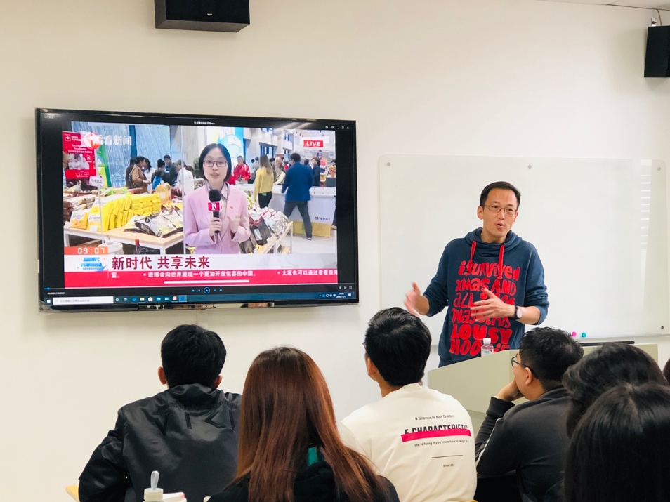 要诀一:“顺”。“现场报道首先要保证内容逻辑的顺畅,就是要将描述新闻现场、叙述新闻事实、点评新闻事件、采访新闻人物等,通过顺畅的逻辑脉络,建构起主题明确、层次清晰、结构完整的内容有机体。”臧熹老师讲道。例如,何晓在进口博览会上的现场报道,便由浅入深、由表及里地展现出进博会是如何使展品变商品飞入寻常百姓家的。此外,还要确保空间调度的顺畅和声画衔接的顺畅,拍摄画面和讲述内容不能东一榔头、西一棒锤,更不能出现“声画两张皮”的问题。
