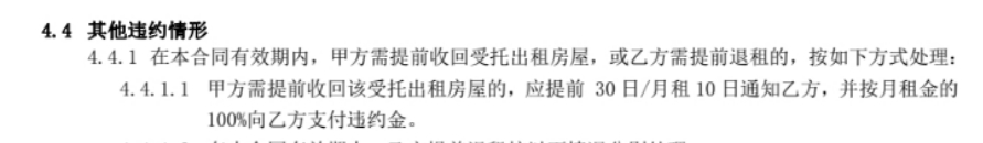 黄小姐提供的蛋壳租赁合同与app上关于退租与换租的相关说明