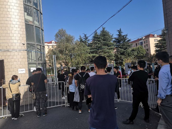 11月18日下午2点30分左右,记者前往位于闵行区七莘路250号中诣创意产业园2号楼的临时办事处,此时现场共有57名前来咨询问题的租客和3名蛋壳内部的工作人员。记者观察到,工作人员让前来询问的租客先在表格上登记自己的姓名、电话及遇到的具体问题,然后排队领取号码,依次向工作人员反映自己的问题。在办公室内有一名工作人员在负责租客的登记,在办公室外有两名工作人员针对租客的问题进行解答。部分租客聚集在一起交流自己遇到的问题和困难,不少租客都表现得较为焦虑。租客俞先生表示,“每次来这里,他们都说让等,不知道等到什么时候才能有结果,现在工作都心不在焉的”。