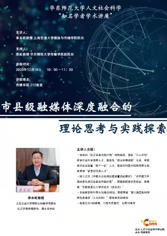 讲座将围绕“如何理解融媒体?”“中外融媒体有哪些差异?”“如何再深度融合?”三个问题分享对推进新时代县级融媒体深度融合发展的理论思考和路径探索。