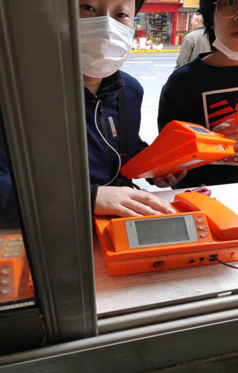 在这间大约3平米的电话亭窗口外,摆放着三部暗橙色的老式传呼电话,其中有两台能够打通,还有一台屏幕是暗的,不能运行。按键和机体上蒙着一层灰尘,已显得很陈旧了。这台传呼电话从7月份起就开始报修,但一直到11月份还没能完全修好,似乎是找不到现在还能匹配的传呼电话了。