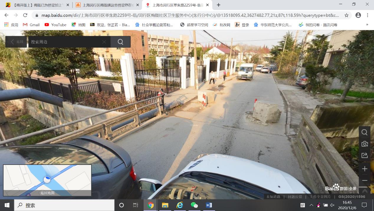 12月5日上午9:00,环卫工人吴起芳正在桥边街道清扫落叶。吴起芳在梅陇镇做环卫工作已经有16年的时间。据她回忆,在十年前,桥东边还是一片未开发的路段,自2017年起,桥东侧新楼盘动工,莘朱东路道路管养工程和外环生态绿带建设也分别投入实施,所以这片路段常有施工,工程车辆增多。吴起芳说:“‘华泾港’上的这座小桥是连接东西两个路段最便捷的通道,许多机动车为了节省时间会选择破坏掉桥头的水泥墩,直接从桥上通行。前几年还总发现有附近工地的土方车在桥上通过。”
