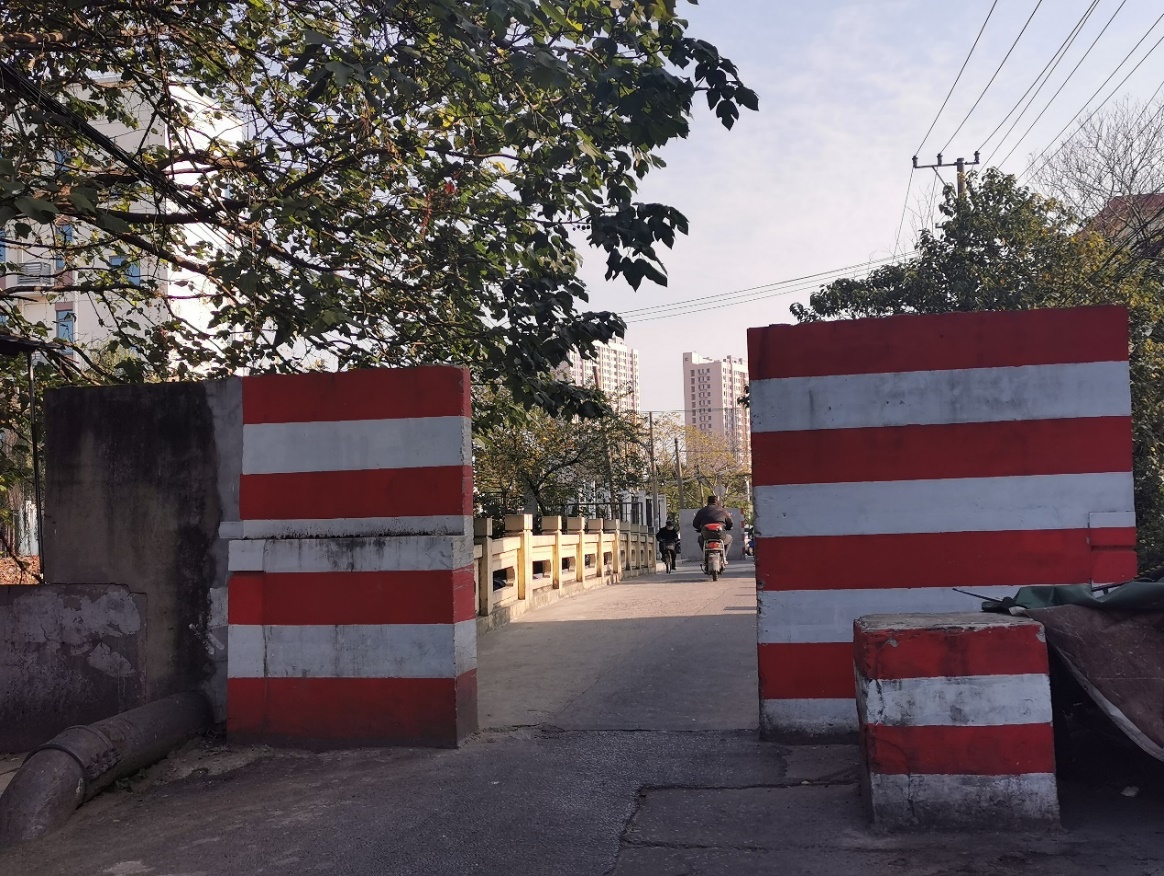 这座呈东西走向的小桥位于闵行区梅陇镇2259号,该桥长度约50米,宽度约5米,桥体两侧建有约半米高的石头护栏,桥下便是华泾港河道,是连接莘朱路和龙州南路的要道部分。负责梅陇镇基础设施建设的城市建设投资开发公司称,该桥自60年代建成以来年久失修,已被认定为危桥,前两年梅陇政府在头尾两端砌上了围墙,禁止机动车行驶,防止桥面因承重能力有限发生塌陷。但是,附近居民和来往路人向记者反映,这两堵半封闭的围墙缩小了出入桥梁道路的空间,不仅造成了桥面出入口频繁拥堵的现象,其形成的视觉盲区也提高了非机动车进出的刮碰风险,存在着一定交通隐患。