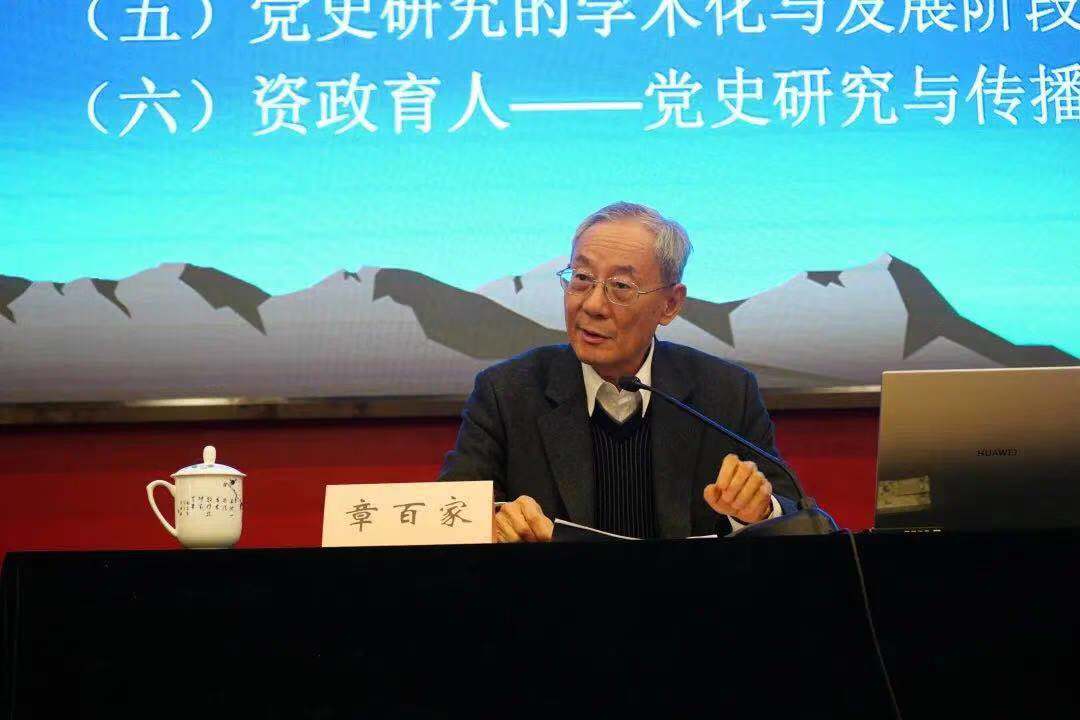 在讲座中,章百家教授首先分析了党史研究的起源与发展。他指出,党史研究不同于一般的历史研究,不是书斋里的学问,而有很强的政治性和现实性,在其起源阶段就与党的斗争紧密联系在一起,是对党的实践的记录和经验的总结。从学科角度看,党史可以说是政治学和史学的交叉学科,但我们的研究使用的基本是史学方法。随后,他介绍了党史研究发展的过程,特别是十一届三中全会后党史的拨乱反正、党史机构的建立,以及党史研究的学术化与发展阶段等问题;最后,章教授立足当下,指出党史研究与传播的重要使命和意义就是资政育人。