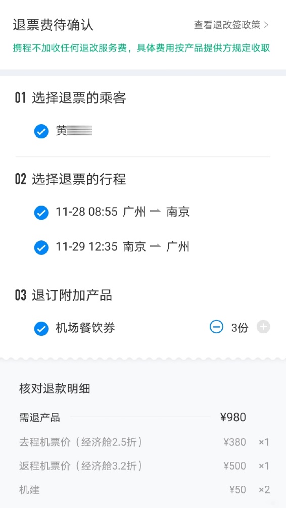 (机票退票截图 受访者黄女士供图)