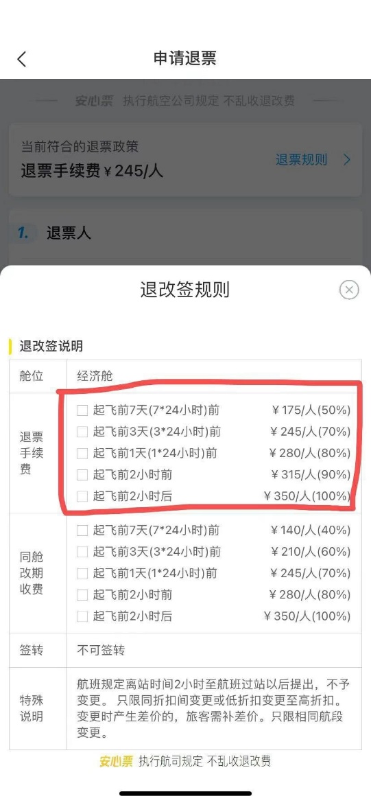 (机票退改签规则 受访者小王供图)