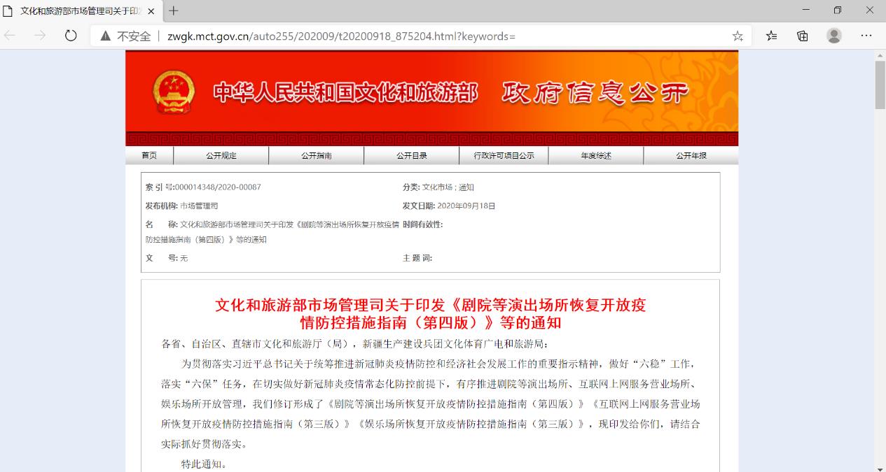(国家文化和旅游部网站发布第四版《通知》)