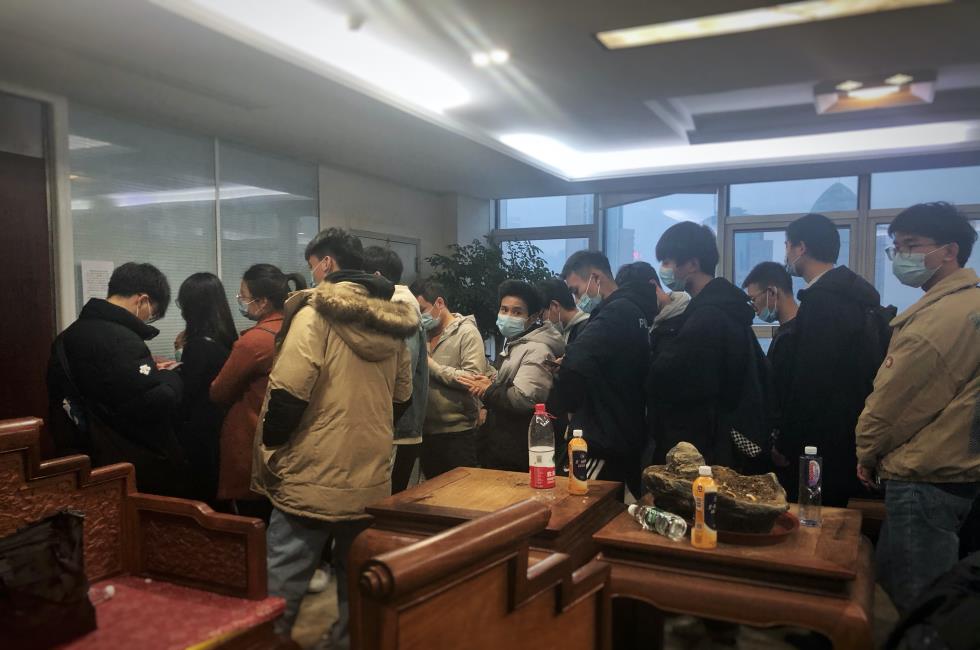 晚上八点,上海市虹口区市场监督管理局工作人员戚维祥和北外滩派出所的警察来到现场,在准备将王豹弟带离时遭到在场维权者的阻拦。戚维祥解释,公司现场接待时间按公告只到晚上八点,王豹弟先生在未被定性为犯罪之前,是自由的。现场发生了几次较为激烈的口角争执,戚维祥以散布谣言为由将一名扬言老板跑路的男子带走,并通知其他人于下周一早上九点再来公司进行登记,周末不予受理。