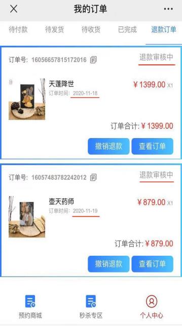 而通过微信公众号进行支付交易采用的是“T+1模式”,即买家付的钱隔一天就能到卖家的账号上,但在发货上面,炎沐并未严格遵守双方约定的在用户预付款后的十五个工作日之内发货。“8月份的时候一般在10天以内发货,从10月底开始就越来越慢,半个月、甚至一个月都不发货。11月又推出了很多新品,中签率也变得越来越高,我们预付的款也就越来越多,一天有时候可以抽到5个手串。”从广州赶来上海的王磊向记者提供了他的购买记录,12月6日当天他预约的四个手串产品“沙卷漫天”、“正阳道人”、“青龙”、“白虎“中除了“正阳道人”都中签了。“我自己和委托朋友付的订单总共加起来有十二万多。”王磊告诉记者,“我信用卡里现在有五万多的套债,花呗里还两万多的钱马上都要还……