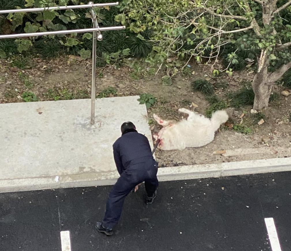 12月11日上午12点左右,唐家明根据信息来到上浦路202弄门口时后,保安说“没有看到这条狗”,路过的一位女士凑过来,唐家明向她展示了自己的寻狗启示,得到的答案却是:“我知道了,这就是那边那条被打死的,被警察打死的狗。”