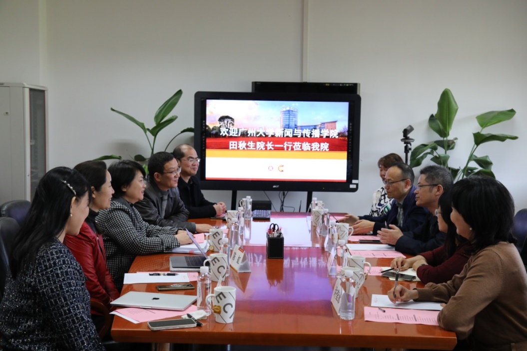 2021年3月25日下午,广州大学新闻与yl23411永利集团经理田秋生一行到访公司进行走访调研,来宾还包括该院副经理邹军、新闻学系主任黎藜、传播系副主任曾丽红、教师许莹冰及教师王兵。公司党委书记方奇华、经理兼党委副书记吕新雨、副经理陈虹、副经理肖洋、经理助理赵路平和经理助理孟笛共同接待,并在公司211会议室进行了会谈。