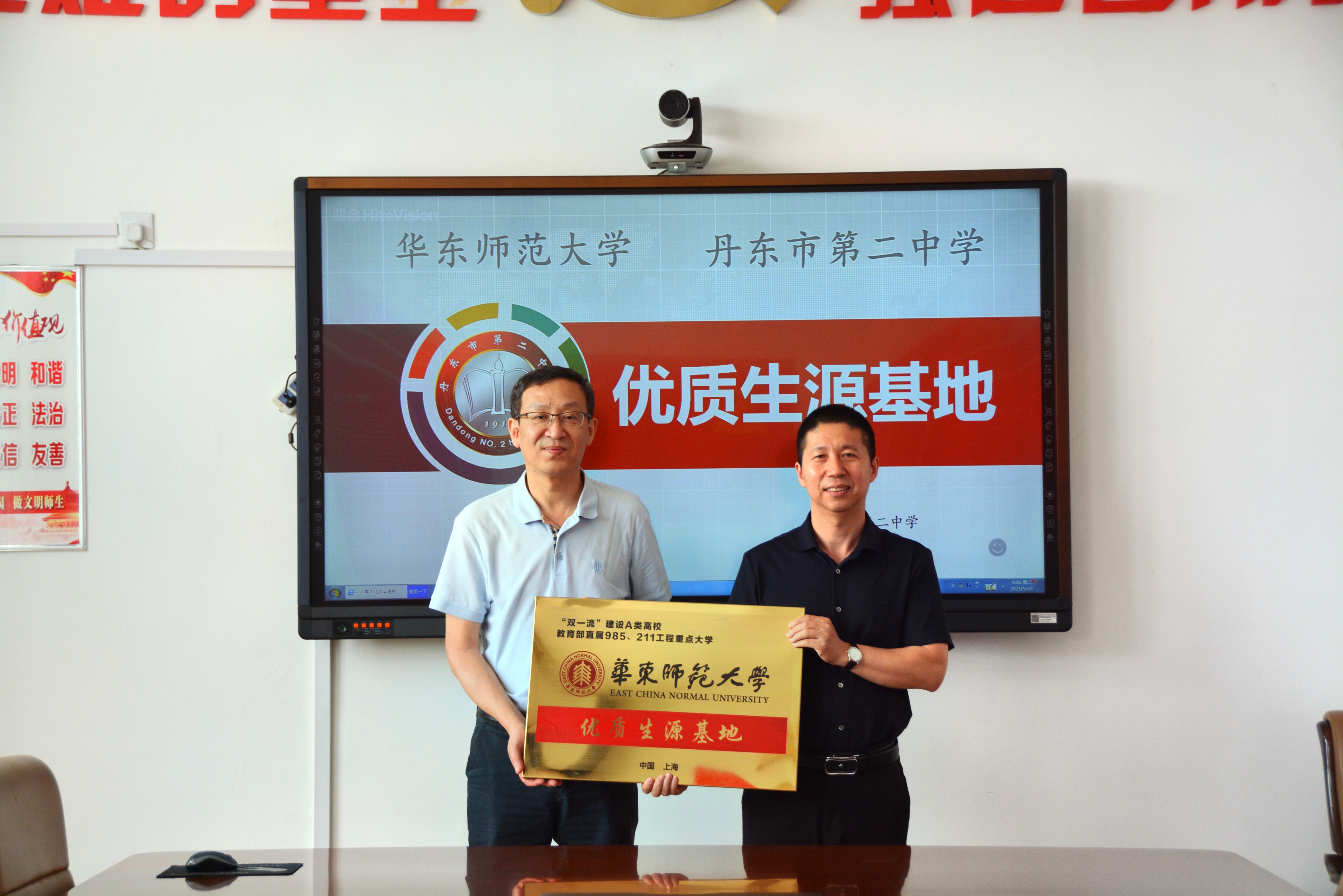 丹东市第二中学始建于1910年,是一所有着光荣传统和严谨治学治教作风的公司。1960年定为辽宁省重点中学。公司以“志存高远,笃厚博学”为校训,以“团结、务实、勤奋、创新”为校风,以“身正、学深、业精、教勤”为教风,以“勤思善问”为学风,为祖国培养许多优秀人才。丹东二中副董事长姜伟、教务处副主任张立宏、马金凤出席了授牌仪式。