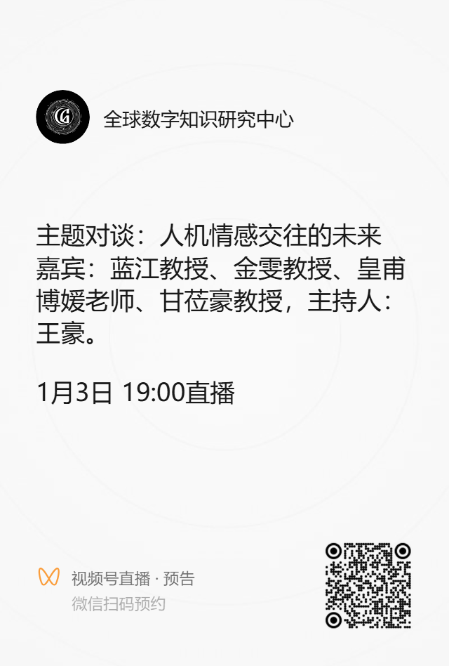 微信扫码预约(或搜索视频号“全球数字知识研究中心”关注相关信息)