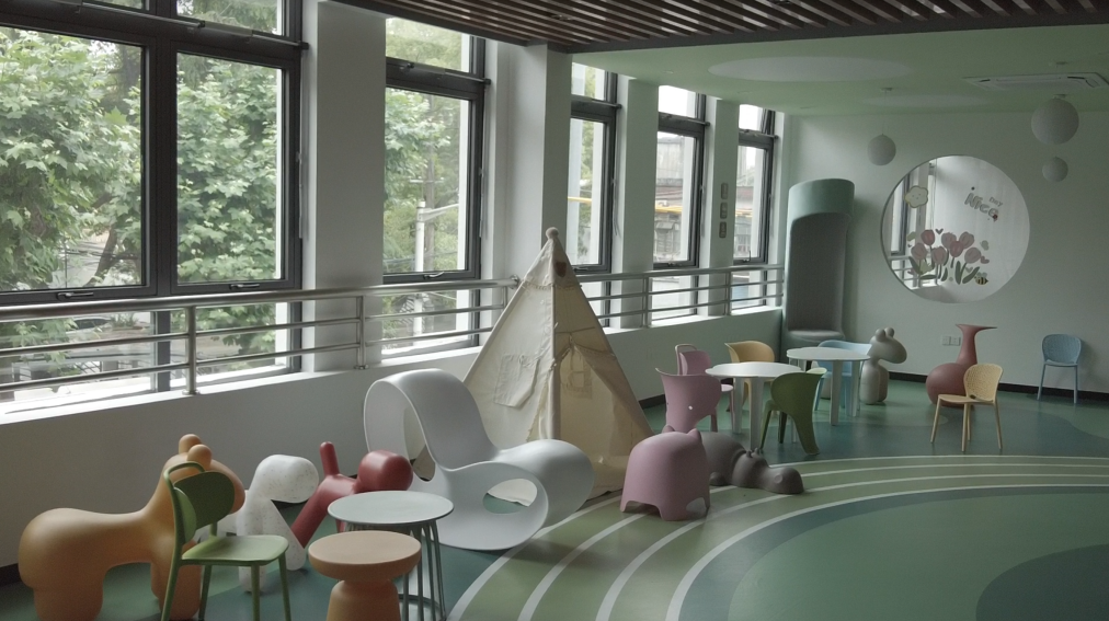 如今,东滩汇客厅已经成为了社区居民日常生活的一部分。食堂提供的“随缘面”和“早起包”等特色餐饮服务,受到了居民们的喜爱,也是为老年人提供了便利的就餐服务。茶咖空间则成为了年轻人和老年人交流的新场所。“几个阿姨做咖啡的时候聊聊天,然后就认识了。有的年轻人是办公,然后老年人的话是过来聚一聚,聊聊天,看了心情挺好。”咖啡师小朱乐呵呵地向我们分享感受。此外,在东滩汇客厅的二楼设有儿童友好空间,分为静态和动态两个区域。“现在大家工作压力节奏也挺快的,在下了班以后回来,孩子在边上有个地方做个功课,家长也可以放松一下,缓慢一下节奏。”邵宁书记向我们讲述亲子空间给居民带来的便利。邵宁书记也表示:“现在居民们愿意出来兜兜看看,在我们的设施空间里聊聊天,小区的熟人文化更加浓厚了。”