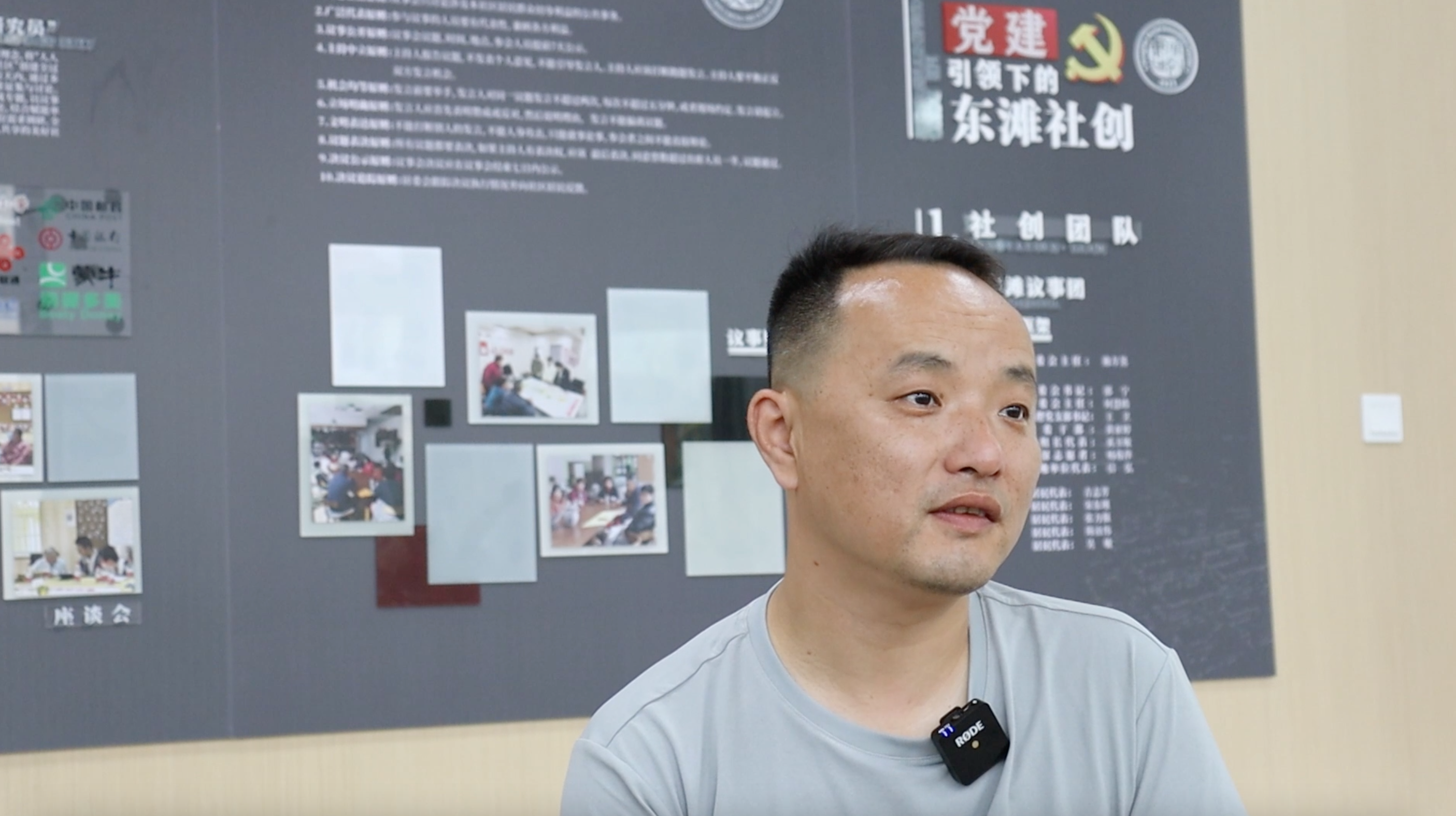 参观完东滩汇客厅,我们见到了邵宁书记,刚结束完龙舟比赛,热情地向我们介绍赛事的盛况。在采访中,邵宁书记向我们讲述社区的变迁和他们所做的努力。邵宁书记从2022年8月来到这个社区,结合居民的需求反映,着手进行美丽家园建设,不仅是东滩汇客厅的建立,还包括修缮老旧房屋、改善路网结构、提升小区环境、优化停车布局等其他举措。