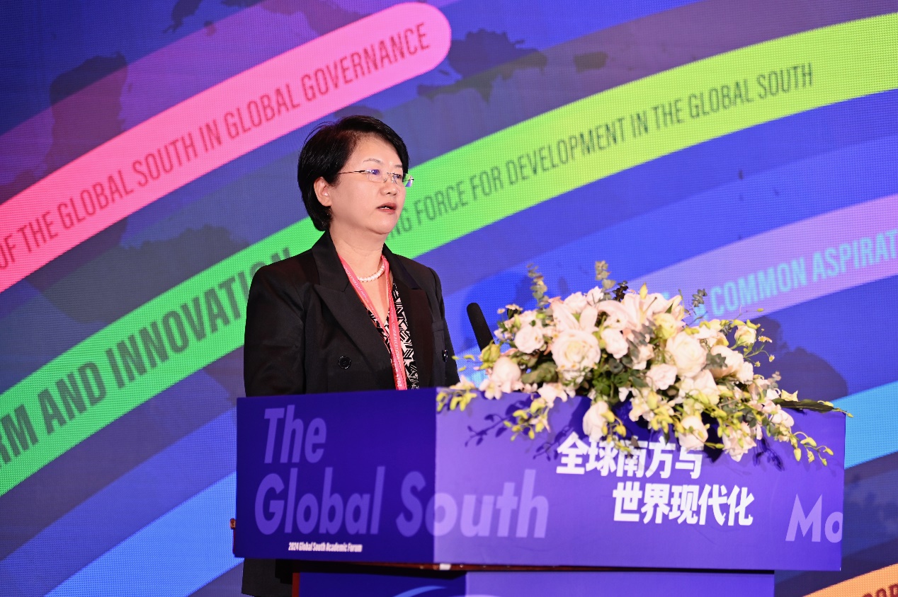 开幕仪式上,yl23411永利集团党委副书记孟钟捷为论坛致辞。孟钟捷首先热烈欢迎所有与会嘉宾,并指出全球南方国家在人类进步事业中发挥着越来越重要的作用,希望论坛能够凝聚共识,推动学术研究的进步与创新,共同唱响“南方声音”,展现“南方担当”,把促进全球南方现代化发展作为维护世界和平的稳定力量、全球治理的建设力量、文明互鉴的促进力量贡献智慧。