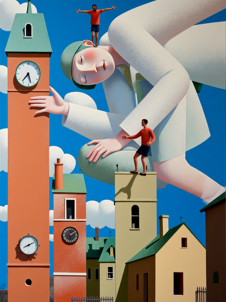 时间的感知常常被社会结构和文化背景所影响,有时甚至是失控的。在超现实主义风格中,通过象征性的元素来表现时间的“无序”。