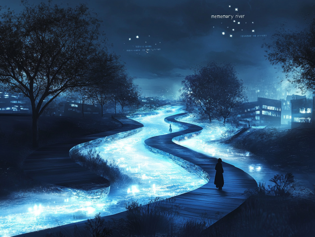 MJ / #prompt:a river, a lot of correct numbers under the river, a person silhouette on the bank, flat style, abstract style, minimalist gradient style, Initial style