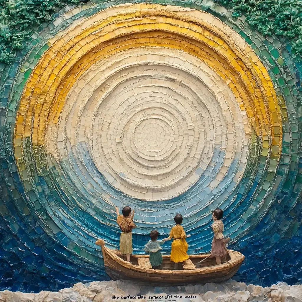 MJ / #prompt:A detailed clock face with clear, elegant numerical markings around the edges, its surface divided into four quadrants depicting the same natural scene across different times of the day. The top-left quadrant shows a serene dawn with soft pink and gold hues, the top-right depicts a bright noon with vibrant blue skies, the bottom-right illustrates a warm sunset with orange and red tones, and the bottom-left captures a tranquil midnight with deep navy blues and stars. The bas-relief style adds depth to the textured scenes, while the metallic rim of the clock glows subtly under diffused lighting. Created Using: neoclassical design aesthetics, multi-depth carving, soft gradient blending, fine details, hd quality, precise transitions, time-inspired symmetry –ar 1:1 –v 6.0