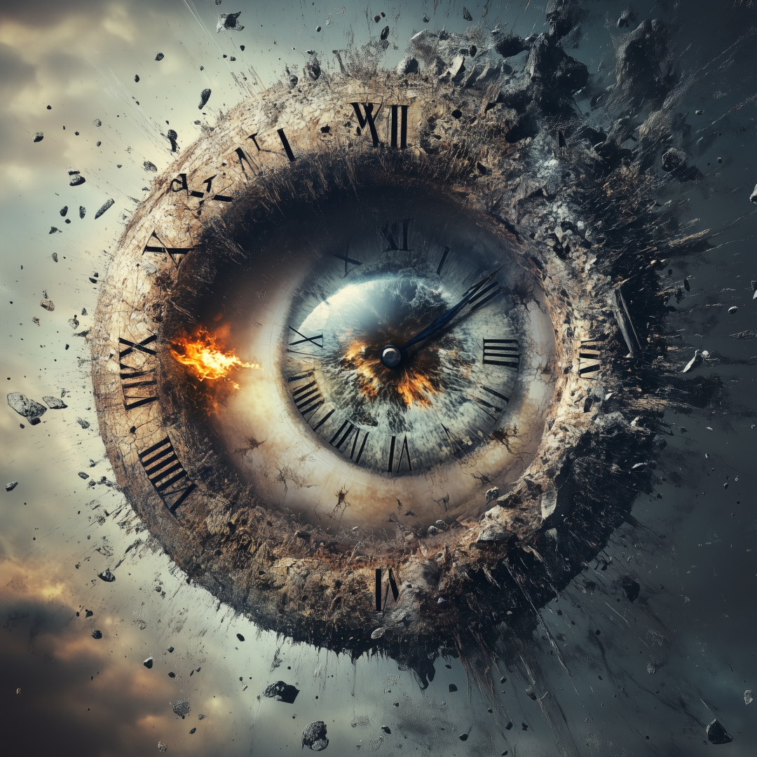 MJ + 可灵AI / #prompt:With time as the theme, generate an illustration that represents time disorder, time chaos, time and space chaos, and the growth and destruction of all things without order --chaos 20 --ar4:3 --weird 400 --v 6.1